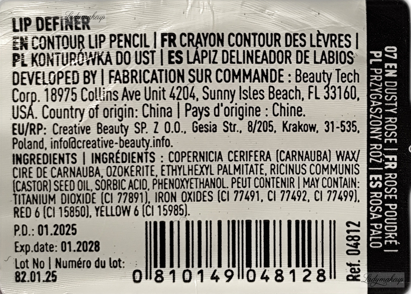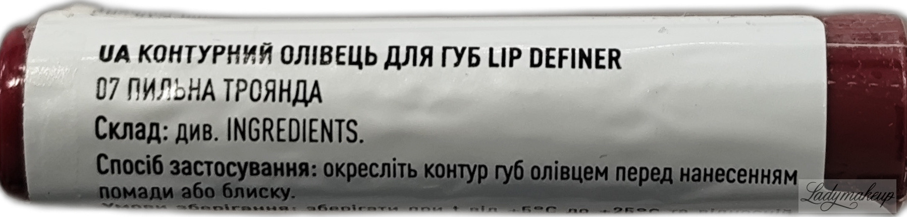 Konturówka do ust. Pozwala na obrysowanie konturu warg oraz zdefiniowanie ich kształtu. Skutecznie zapobiega rozlaniu się pomadki poza wyrysowany obrys, a także pięknie podkreśla i uwypukla usta. Kredka Lamel jest bardzo precyzyjna, a także przyjemnie miękka oraz kremowa, przez co łatwo nakłada się ją na usta oraz długo utrzymuje się na skórze. Lamel konturówka do ust może być stosowana jak zwykła pomadka na całe wargi, a także w duecie z ulubioną pomadką lub błyszczykiem. Produkt dostępny jest o pojemności 1,1 g.