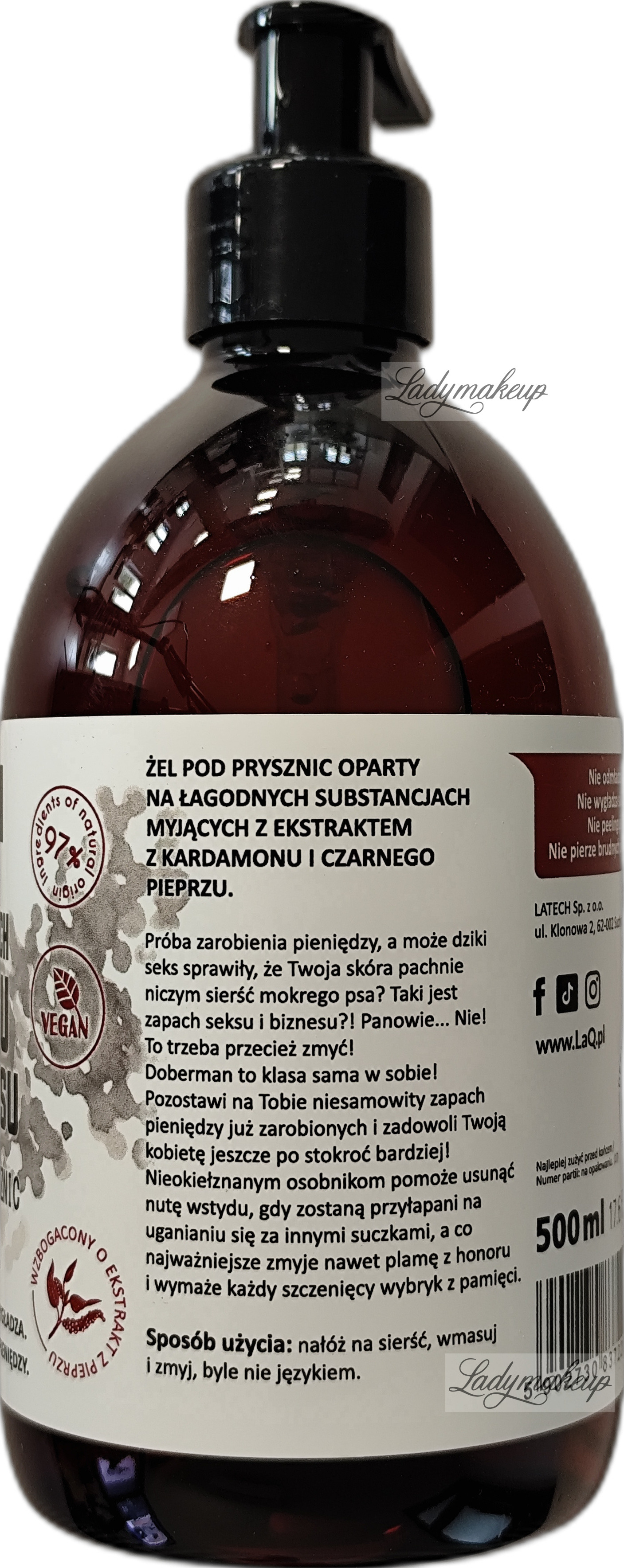 - Żel pod prysznic. Aż w 97% składa się z produktów pochodzenia naturalnego. Dokładnie myje i oczyszcza skórę z wszelkich zanieczyszczeń. Pozostawia uczucie świeżości i orzeźwienia. Wzbogacony został m.in. o ekstrakty z kardamonu i czarnego pieprzu, a także kwas mlekowy i glicerynę. Kosmetyk nie zawiera silikonów w składzie. Został umieszczony w plastikowej butelce z pompką, na której widnieje zabawna grafika i tekst.