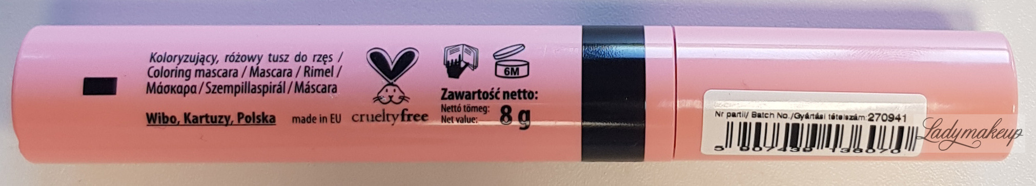 Tusz do rzęs. Posiada dobrze napigmentowaną formułę w niezwykle oryginalnym odcieniu dziewczęcego i żywego różu. Taki innowacyjny kolor doda każdemu nawet codziennemu makijażowi znacznie bardziej odważnego charakteru. Tusz Lovely posiada kremową formułę, która miękko i gładko aplikuje się na włoski, bez nieprzyjemnego sklejania rzęs. Wyposażony został w specjalną szczoteczkę, która dobrze rozczesuje włoski oraz równomiernie aplikuje tusz na ich powierzchnię, bez zbrylania oraz kruszenia podczas noszenia. Lovely tusz dostępny jest w opakowaniu o pojemności 8 g.