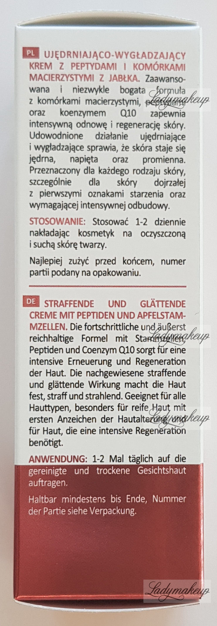 Krem do twarzy. Jest w 100% wegański. Doskonale sprawdzi się przy codziennej pielęgnacji skóry dojrzałej, suchej oraz wrażliwej. Zawiera w sobie specjalnie wyselekcjonowane składniki aktywne takie jak m.in.: komórki macierzyste z jabłka, koenzym Q10, peptydy, skwalan, witamina F, wąkrota azjatycka oraz kwas hialuronowy. Kosmetyk intensywnie oraz długotrwale nawilża naskórek. Dodatkowo widocznie wygładza, regeneruje i rewitalizuje cerę. Ponadto krem Lynia działa antyoksydacyjnie, przeciwzapalnie oraz ujędrniająco. Dostępny jest w higienicznym opakowaniu typu airless o pojemności 50 ml.