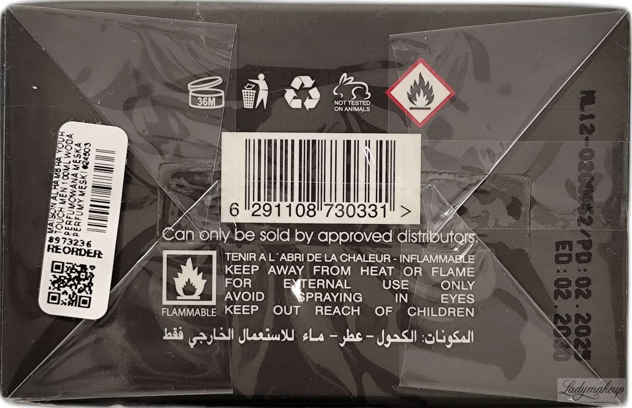 Woda perfumowana. Powstała specjalnie z myślą o mężczyznach. Idealnie sprawdzi się zarówno na co dzień jak i na większe wyjścia. Posiada specjalną, charakterystyczną kuszącą nutę zapachową, która długo utrzymuje się na skórze. W nutach głowy znajdują się kardamon, liść fiołka, różowy pieprz i mięta, w nutach serca króluje cynamon, lawenda, szałwia, arbuz i ananas, zaś w nutach bazy można odnaleźć takie zapachy jak wanilia, kasztan, drzewo bursztynowe, cedr oraz drzewo gwajakowe. Woda perfumowana Maison Alhambra (arabskie perfumy) dostępna jest w kuszącym flakoniku o pojemności 100 ml, który pięknie będzie się prezentował na każdej półce.