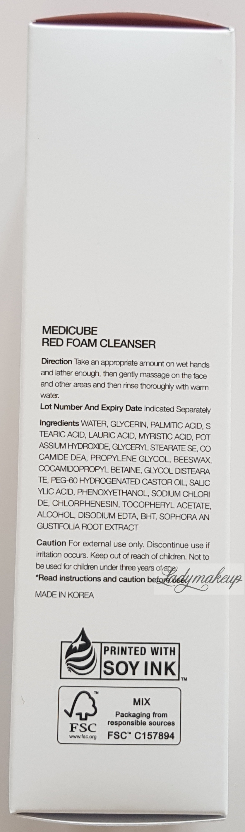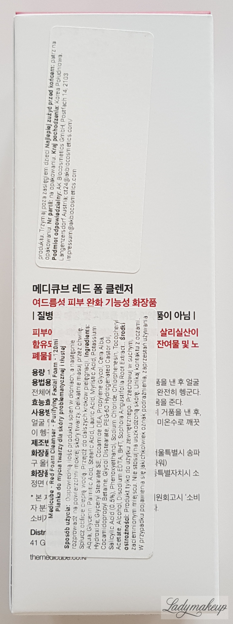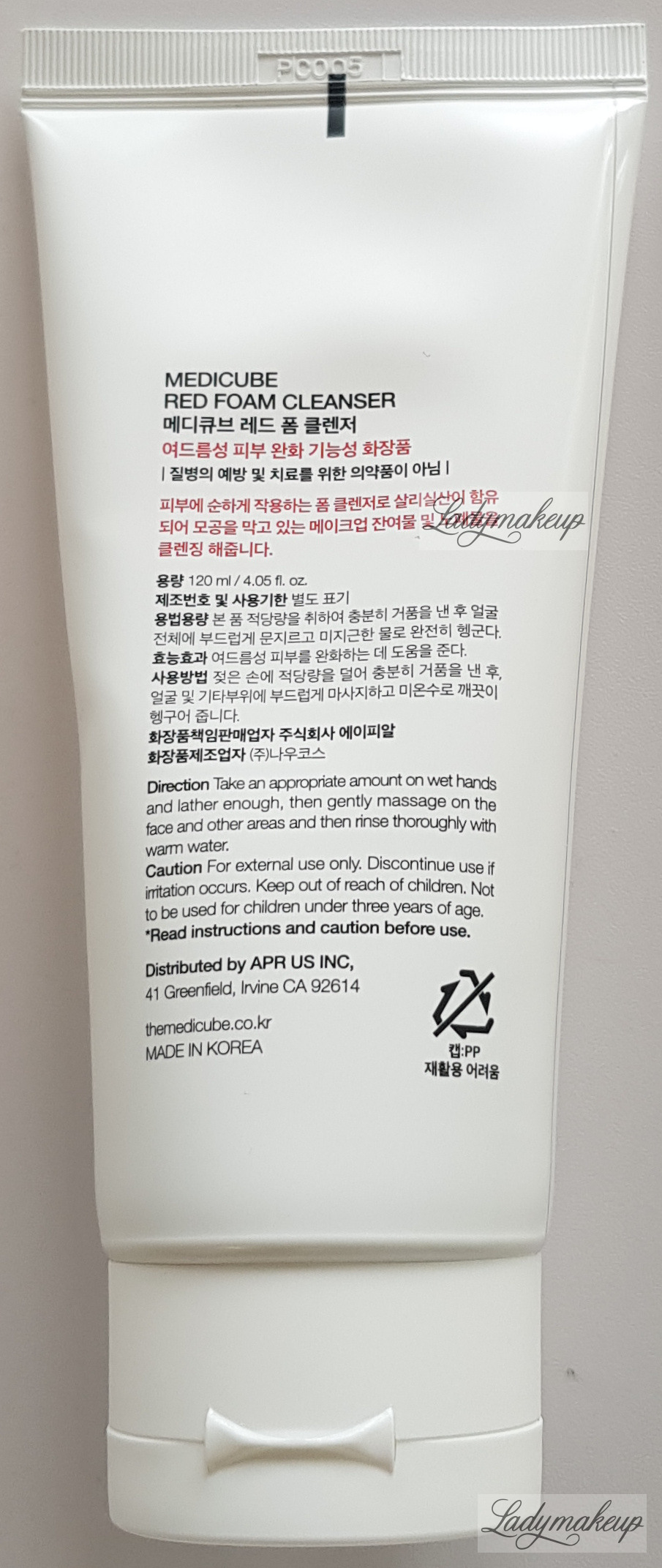 Pianka do twarzy. Przeznaczona do pielęgnacji skóry każdego rodzaju, w tym również tłustej, mieszanej i problematycznej. W swoim składzie zawiera takie składniki aktywne jak kwas salicylowy, wosk pszczeli, ekstrakt z korzenia sofory wąskolistnej oraz glicerynę. Pianka dokładnie oczyszcza skórę z resztek makijażu, zanieczyszczeń oraz sebum. Pianka Medicube skutecznie odblokowuje zatkane pory, zmniejsza ilość zaskórników otwartych i zamkniętych, zmniejsza wydzielanie sebum, a także delikatnie złuszcza naskórek. Dodatkowo redukuje niedoskonałości, łagodzi koi podrażnienia oraz pobudza skórę do szybszej regeneracji. Medicube pianka dostępna jest w poręcznej tubce o pojemności 120 ml.