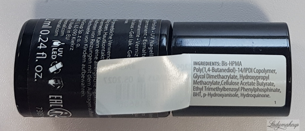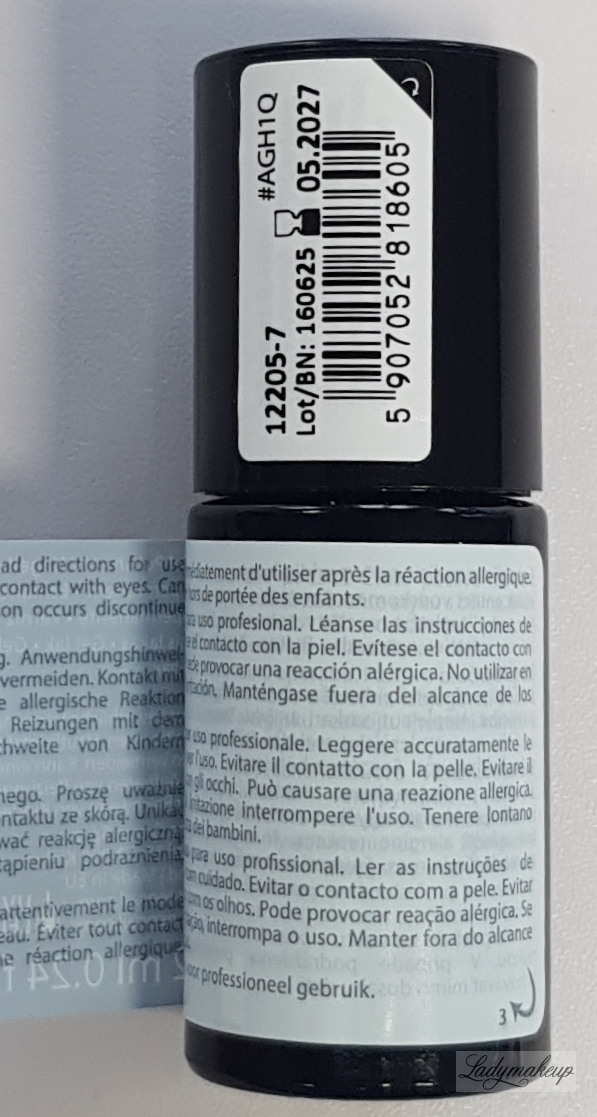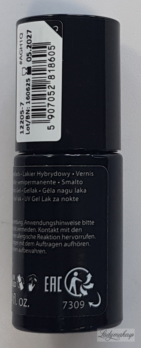 3. Nałożyć warstwę lakieru hybrydowego w wybranym kolorze i utwardzić w lampie LED/UV według tabeli (im ciemniejszy kolor tym dłuższy czas utwardzania). Dla uzyskania głębi koloru czynność należy powtórzyć.