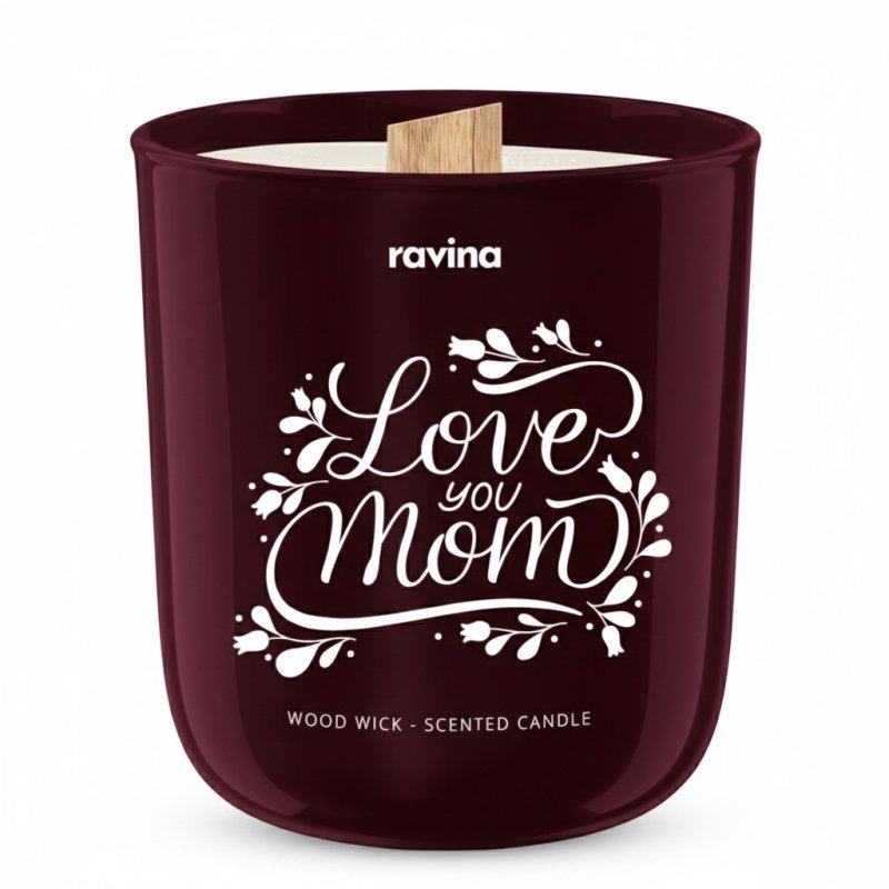 Świeca zapachowa. Wykonana została z najwyższą starannością, na bazie naturalnego wosku sojowego. Umieszczono ją w szklanym słoiczku, który będzie stanowił elegancką ozdobę każdego wnętrza. Czas palenia świecy wynosi około 35-40 godzin, co pozwala długo cieszyć się jej światłem i przyjemnym, naturalnym aromatem. Świeca - Love You Mom posiada różany zapach. Doskonale sprawdzi się jako pachnący upominek z okazji Dnia Matki, urodzin, czy jako wzruszający prezent bez okazji, aby powiedzieć mamie "Kocham Cię".