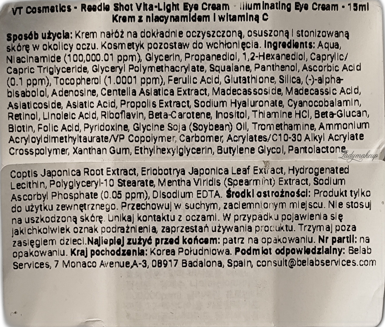 Reedle Shot - Vita Light Eye Cream marki VT Cosmetics.