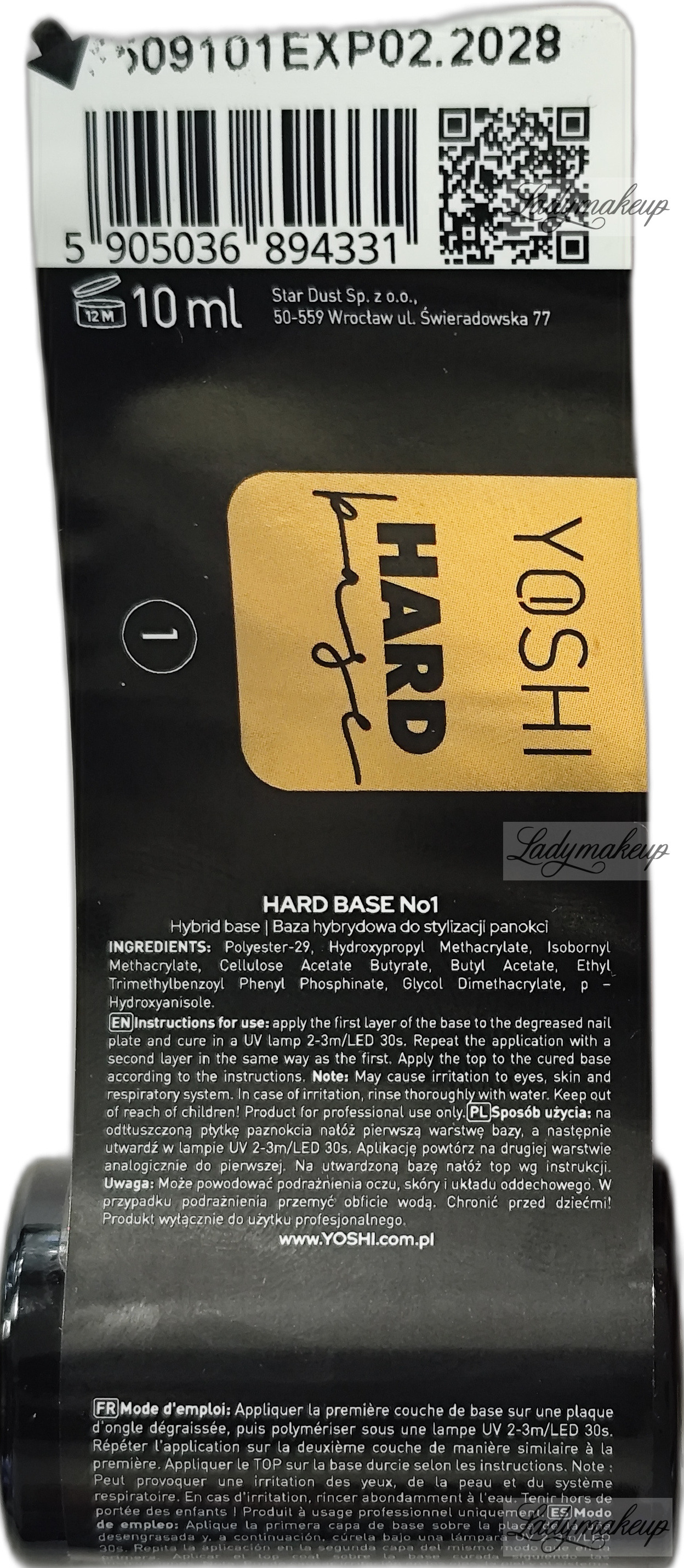 Baza hybrydowa. To podstawowy kosmetyk w większości stylizacji paznokci wykonywanych metodą hybrydową. Baza Yoshi posiada idealną, samopoziomującą się formułę, dzięki czemu nie spływa i nie zalewa skórek, co znacząco podnosi komfort stylizacji. Dodatkowo zapewnia maksymalną przyczepność lakieru hybrydowego do płytki, a także znacząco przedłuża jego trwałość. Po nałożeniu odczuwalnie wzmacnia paznokcie, a także zapewnia efekt perfekcyjnego wyrównania, zaś cała stylizacja utrzymuje się na paznokciach przez bardzo długi czas. Yoshi baza dostępna jest w opakowaniu o pojemności 10 ml.