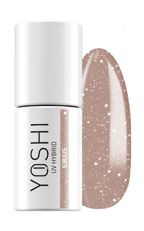 Lakier hybrydowy. Pochodzi ze specjalnej serii Touch the Galaxy, która została zainspirowana wszechświatem i posiada kuszące błyszczące wykończenie z drobinkami brokatu. Lakier posiada kremową formułę, która przyjemnie aplikuje się na płytkę paznokcia. Jednocześnie posiada odpowiednio gęstą konsystencję, która bezproblemowo się rozprowadza, a także nie zalewa skórek i nie tworzy nieestetycznych smug i zacieków. Specjalny szeroki i elastyczny pędzelek zapewnia niezwykle szybką oraz precyzyjną aplikację Yoshi lakier hybrydowy jest niezwykle dobrze napigmentowany, a także tworzy na paznokciu twardą warstwę odporną na odpryski, ścieranie, uszkodzenia oraz blaknięcie koloru. Kosmetyk dostępny jest w butelce o pojemności 6 ml.