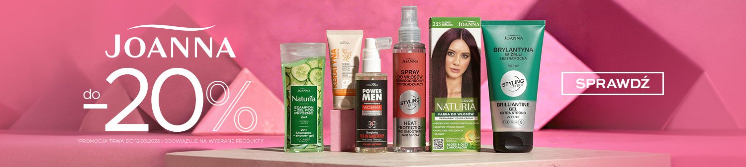 Kosmetyki Joanna cieszą się bardzo dużym zainteresowaniem, dlatego w Ladymakeup zadbaliśmy o ich różnorodną dostępność. To sprawia, że możesz bardzo łatwo znaleźć interesujące formuły, których potrzebujesz i stworzyć swoją personalizowaną rutynę pielęgnacyjną. Postawisz na maksymalnie odżywcze balsamy do ciała? Kremy, które idealnie sprawdzają się do stylizacji włosów? Czy wybierzesz kolekcję Naturia Loki, dzięki której Twoje pasma... całkowicie zmienią swój wygląd? W Twoje ręce oddajemy także bestsellerowe płyny do kąpieli, maski, lotiony, lakiery, a także doceniane na rynku środki do zadbania o stan brwi i rzęs.